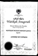 Salinan Watikah Anugerah Dewan Bahasa dan Pustaka